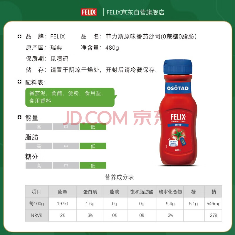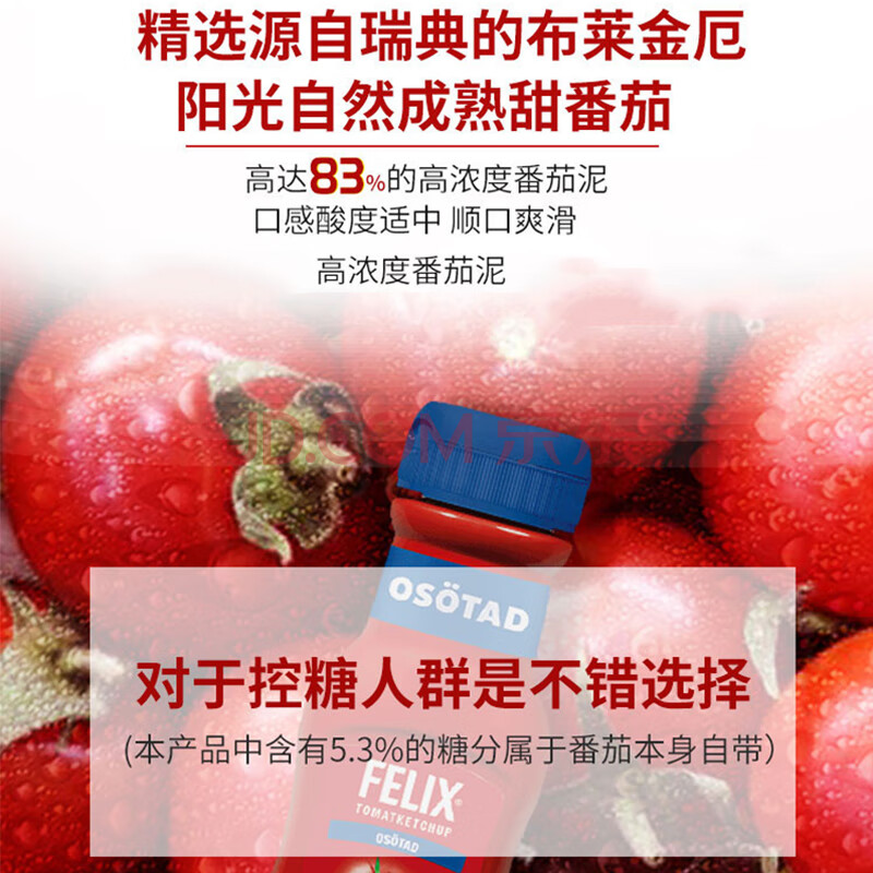 商品相册:菲力斯瑞典进口 原味无蔗糖番茄酱480g番茄沙司0脂肪 意面汉堡薯条酱第