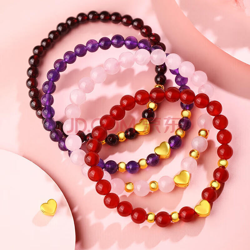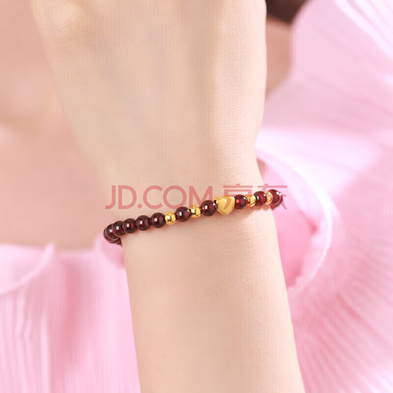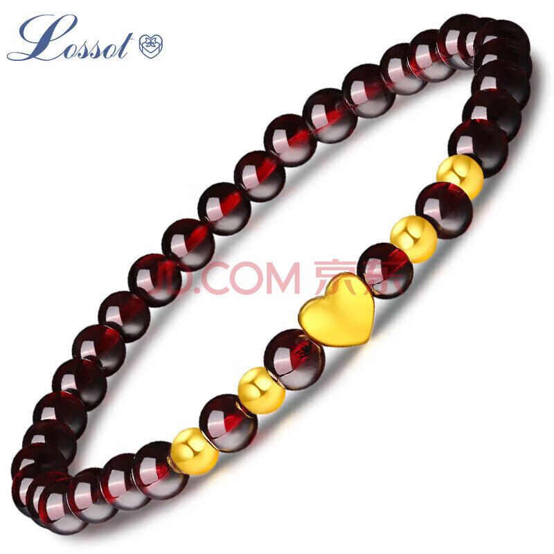 商品相册:Lossot生日礼物送女朋友老婆足金心形黄金手链女3D硬金珠石榴石手串第