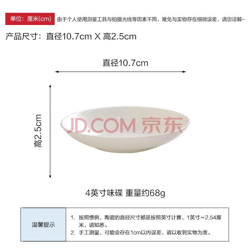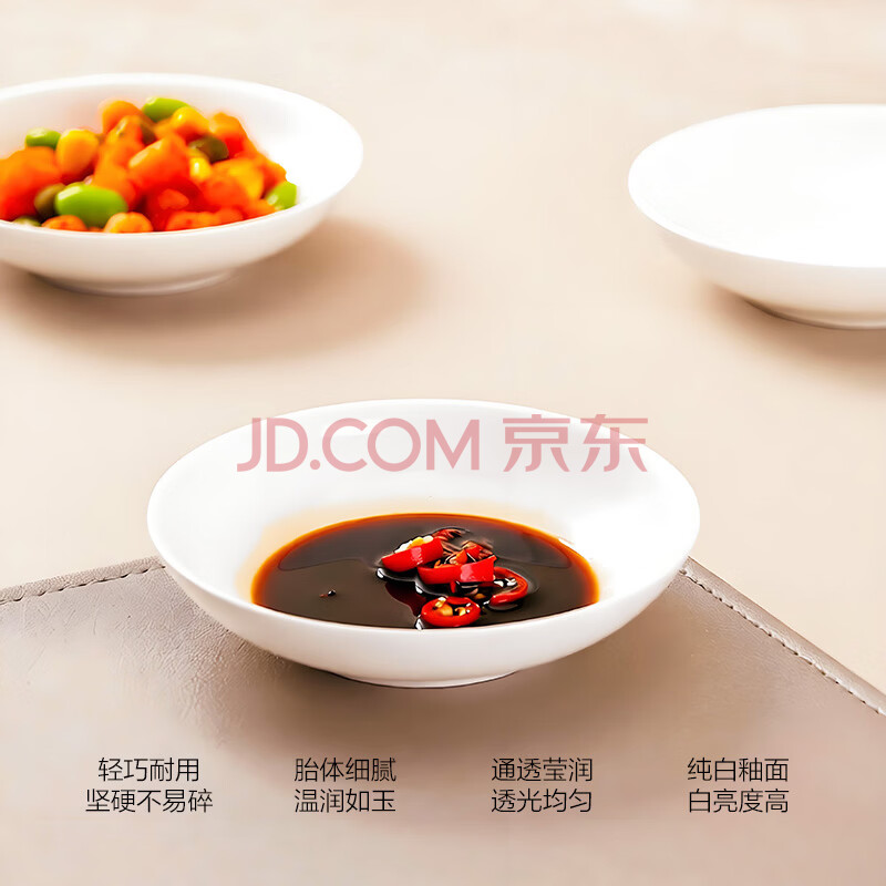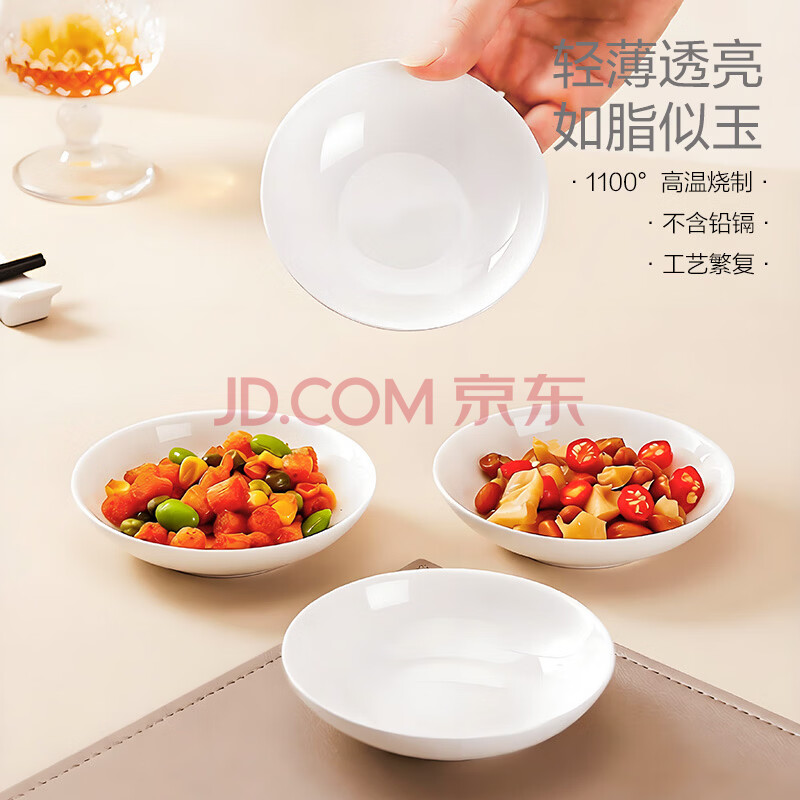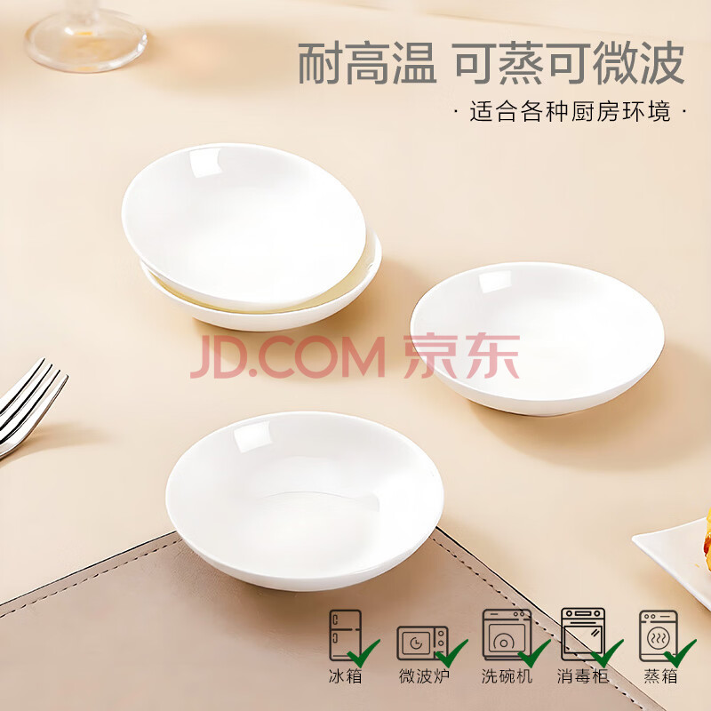 商品相册:斯凯绨(Sky Top)盘子骨瓷吃碟家用陶瓷小调味碟纯白餐具酱油醋碟4英寸4件套装第