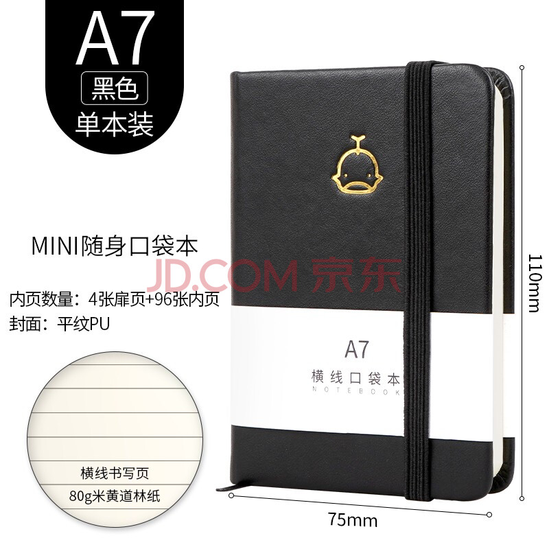 商品相册:西玛(SIMAA)A7/100张便携口袋笔记本子 创意型小号迷你学生小本子记事本日记单词本96内页 黑色JSBA7-1第
