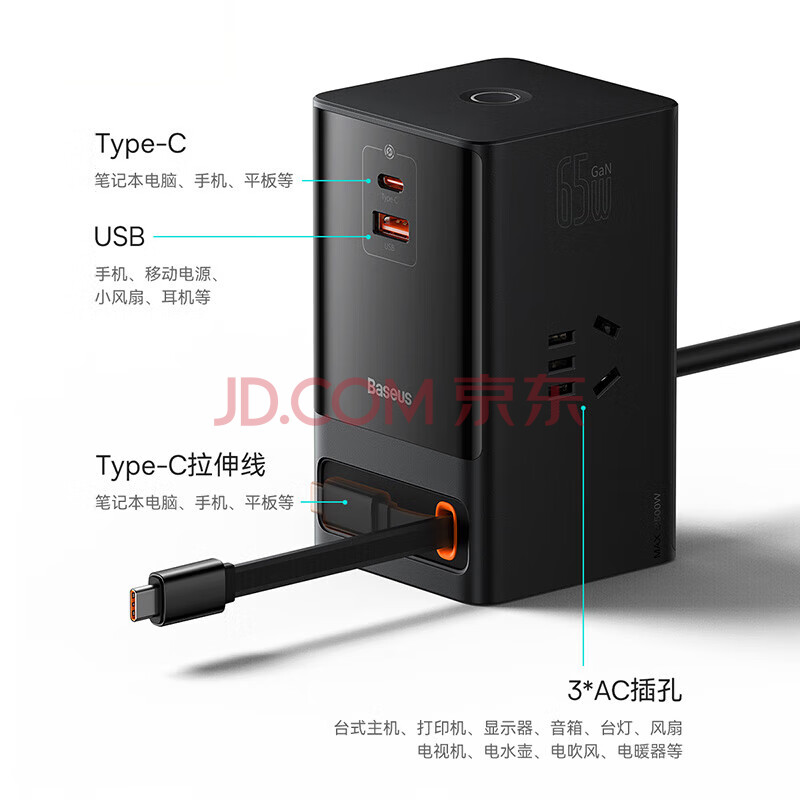 商品相册:倍思 立式插排65W快充氮化镓插座桌面充电站/智能充电/多功能充电器/魔方轨道插线板/桌面插座第