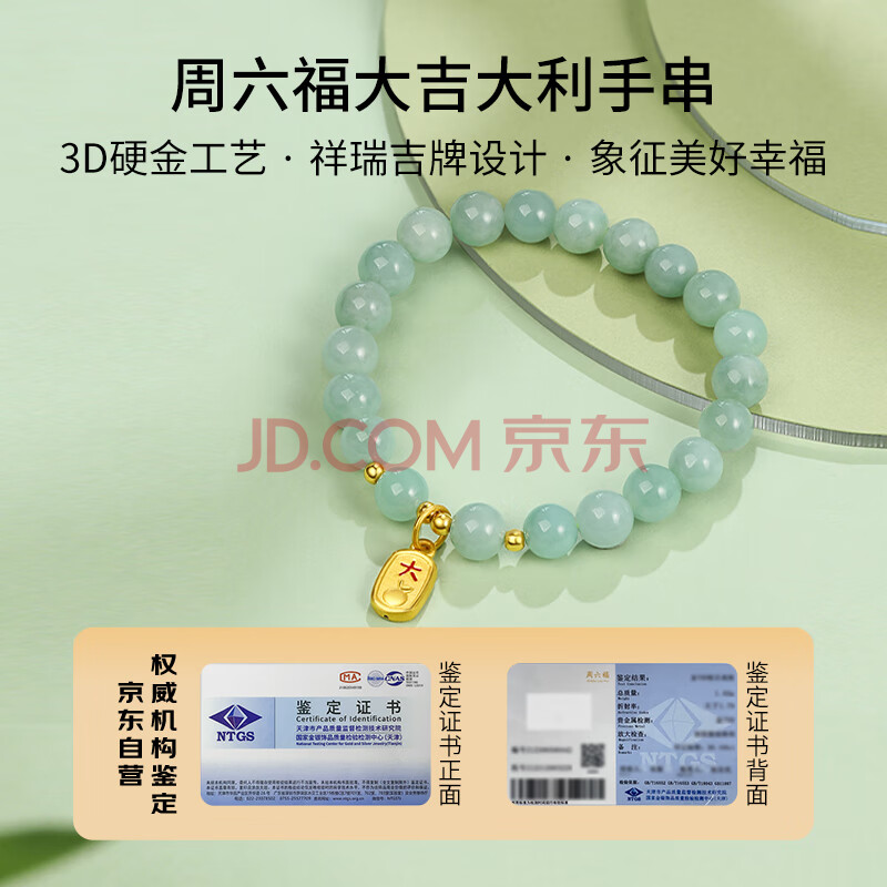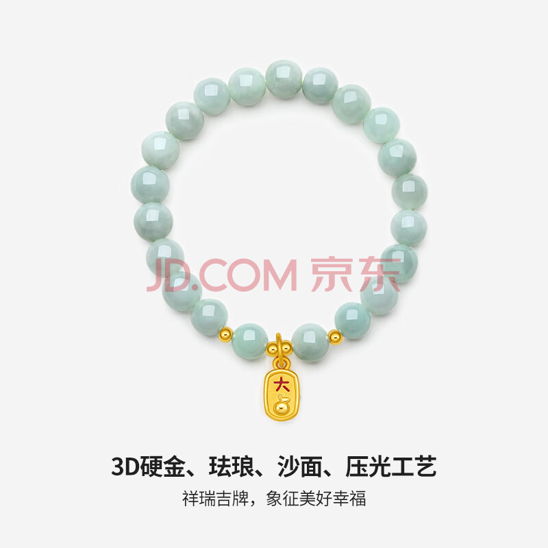 商品相册:周六福3D硬金黄金手串 大吉大利 黄金翡翠手饰 Y1911115 17cm生日礼物第