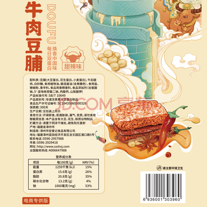 商品相册:宏香记牛肉豆脯豆干256g五香味+甜辣味手撕素肉独立包装儿童零食第1张/共6