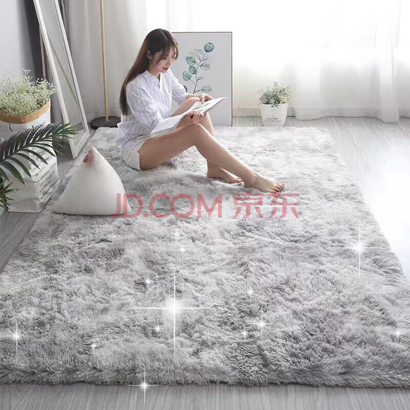 商品相册:梦蜓长绒丝毛客厅地毯茶几卧室飘窗床边毯垫 简约银灰 70*160cm第