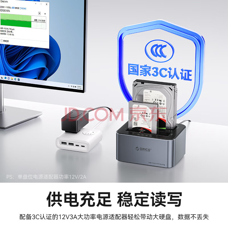 商品相册:奥睿科(ORICO)移动硬盘盒底座2.5/3.5英寸SATA机械固态通用Type-C3.2台式笔记本ssd外置硬盘盒子6616C3第