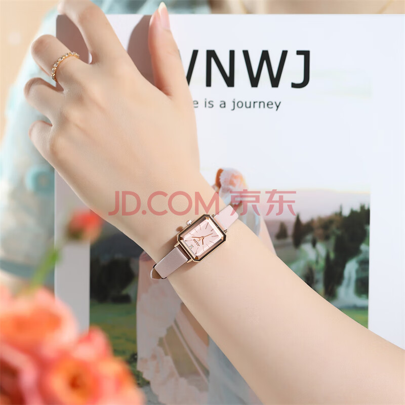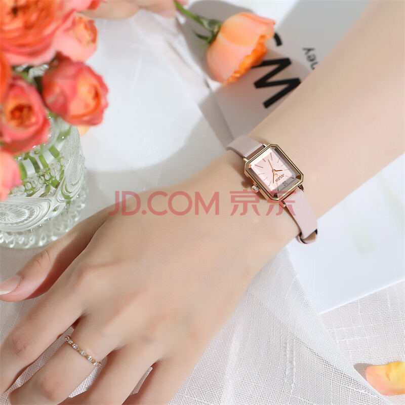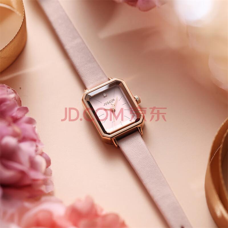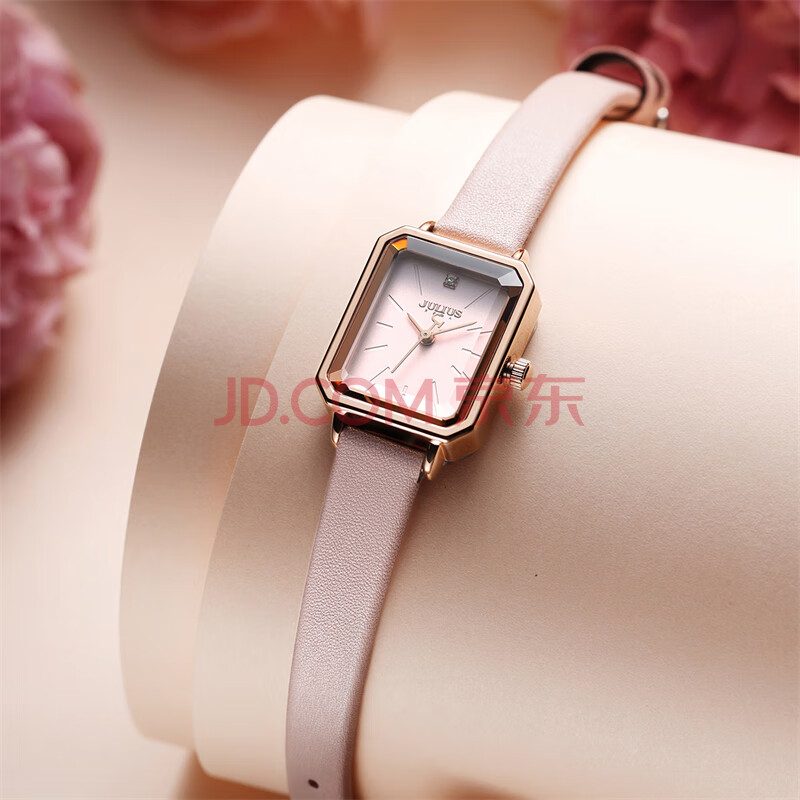 商品相册:聚利时(Julius)手表女韩国时尚简约气质小方表手链表防水石英腕表萝莉粉JA-1231B第