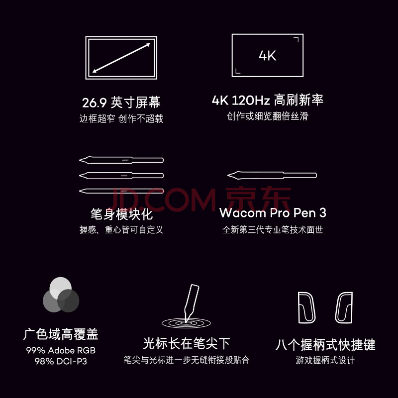 商品相册:Wacom数位屏 26.9英寸手绘屏 4K120Hz触控电子绘画屏 数位板 手绘板 手写板连电脑 专业绘画板 DTH271第