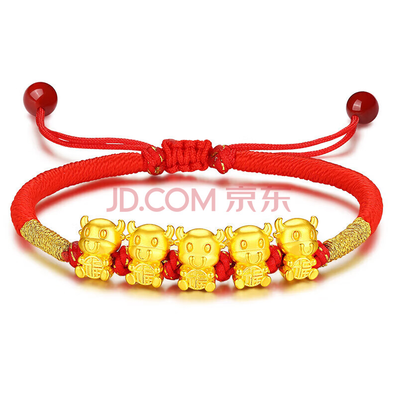 商品相册:Lossot生日礼物本命年十二生肖牛足金五福牛黄金转运珠手链5D硬金牛第