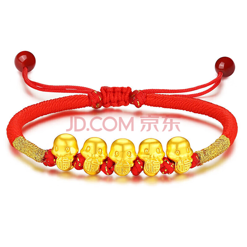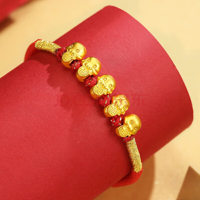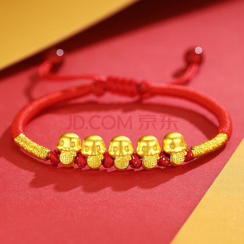 商品相册:Lossot生日礼物本命年十二生肖蛇足金五福蛇黄金转运珠手链5D硬金蛇第