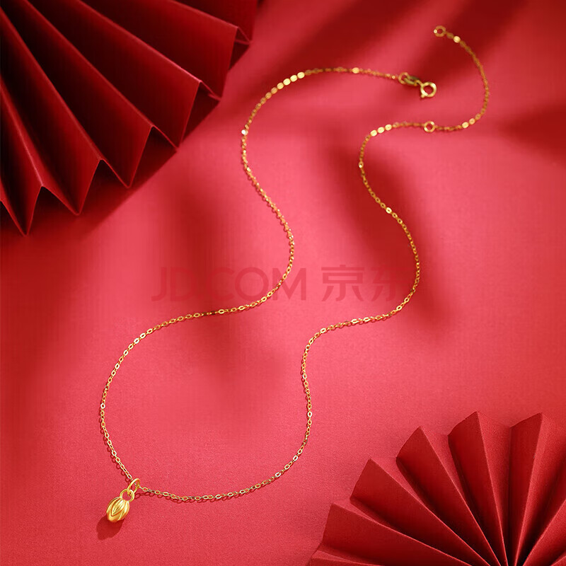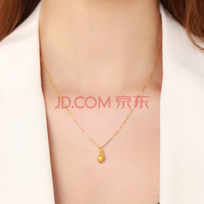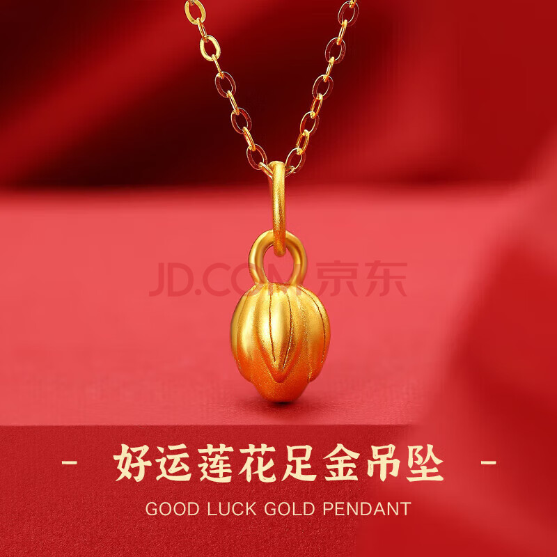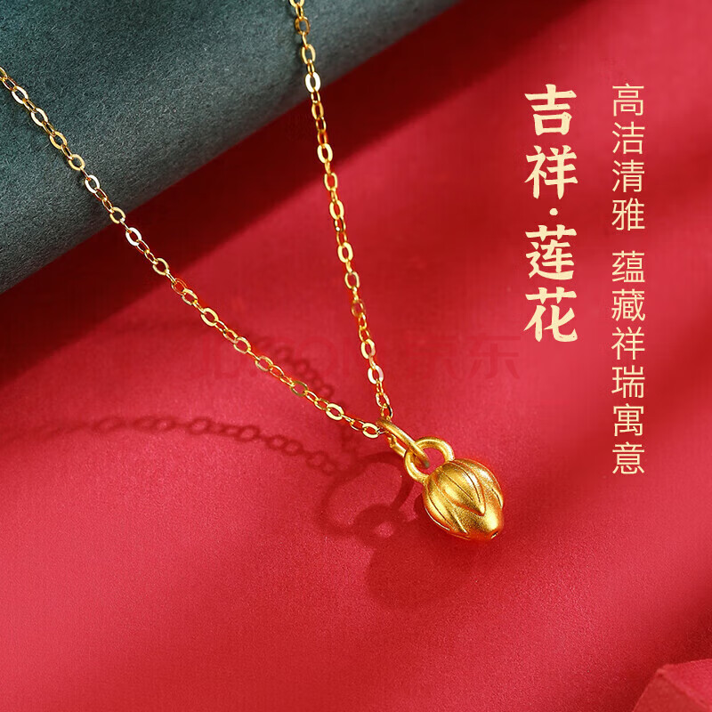 商品相册:Lossot生日礼物送老婆女友国潮莲花足金黄金吊坠女金项链3D硬金挂坠第