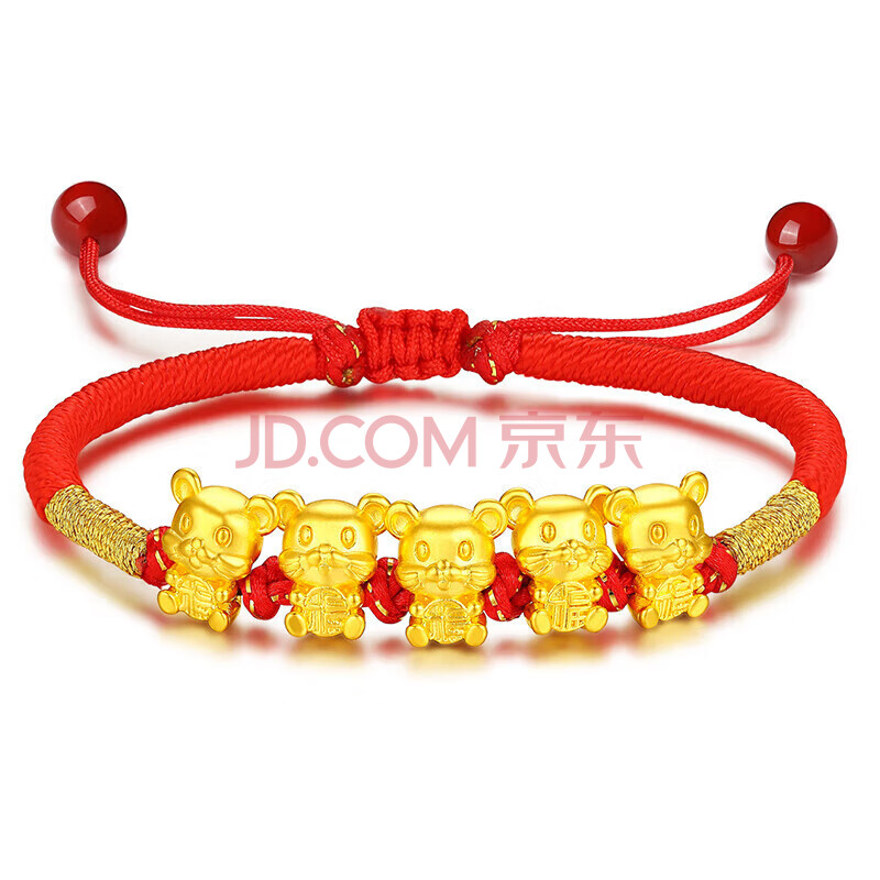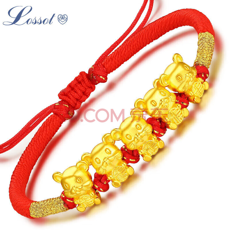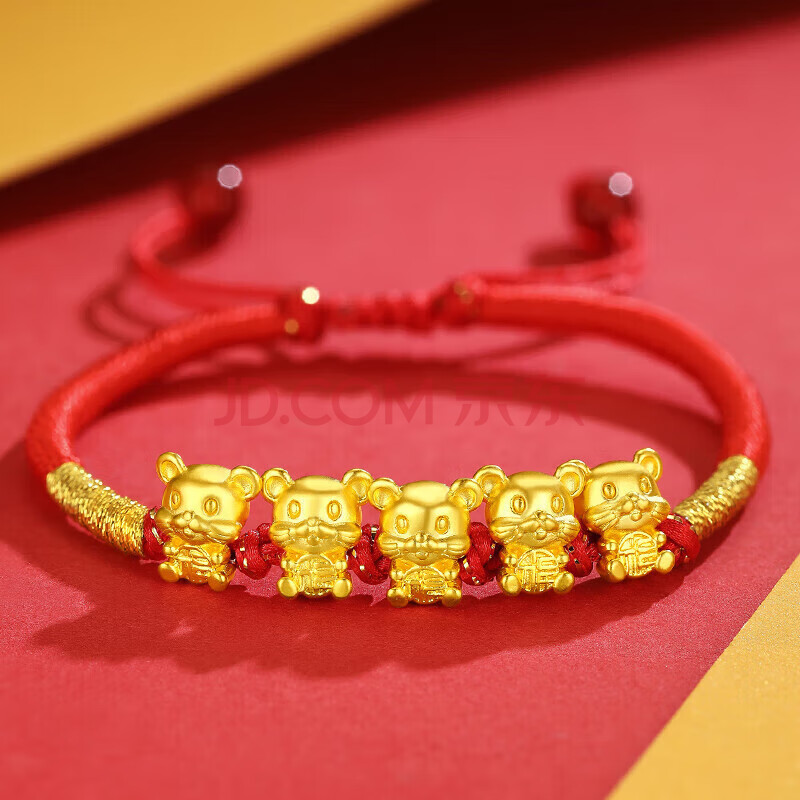 商品相册:Lossot生日礼物本命年十二生肖鼠足金五福鼠黄金转运珠手链5D硬金鼠第