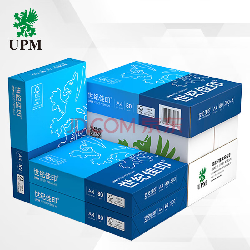 商品相册:UPM世纪佳印 80g A4打印纸 复印纸 加厚款 高速打印 500张/包 5包/箱(2500张)第