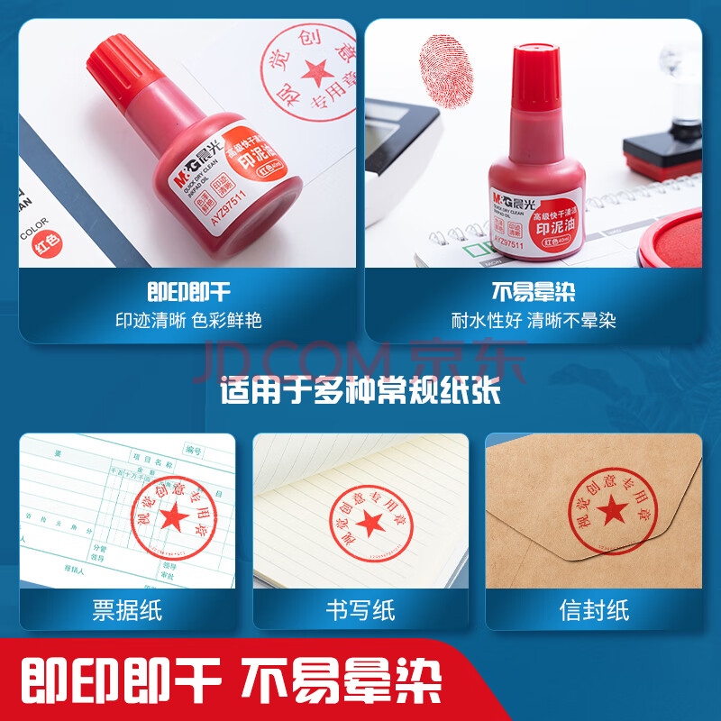 商品相册:晨光(M&G)40ml财务印泥快干印章清洁印油 办公用品 红色 单个装AYZ97511第
