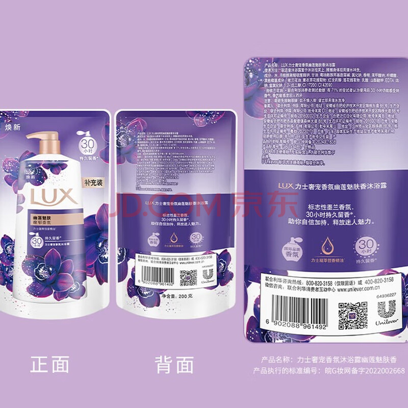 商品相册:力士(LUX)沐浴露套装幽莲魅肤750gX2送沐浴露200g香味持久男女士留香第