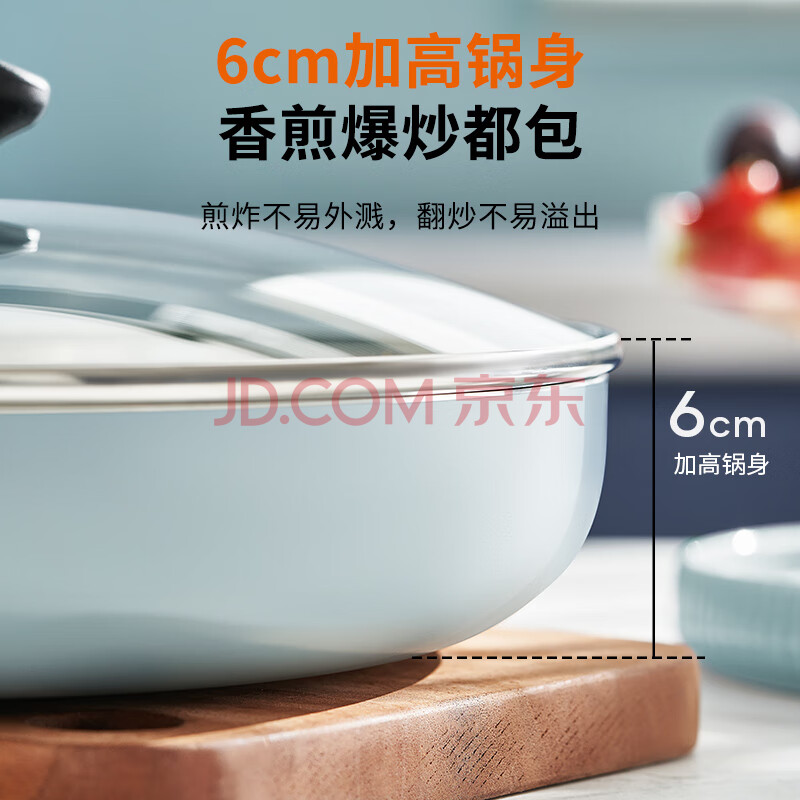 商品相册:九阳(Joyoung)不粘煎锅聚油加深平底锅煎饼煎蛋煎牛排锅燃气明火专用墨峰蓝28cm第
