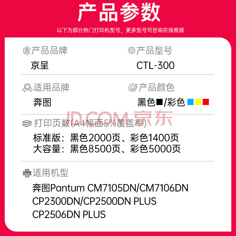 商品相册:京呈CTL-300HC粉盒青/蓝色适用奔图CP2506 PLUS硒鼓粉盒2500DN PLUS CM7105/7106DN打印机CP2300DN碳粉墨盒墨粉盒第