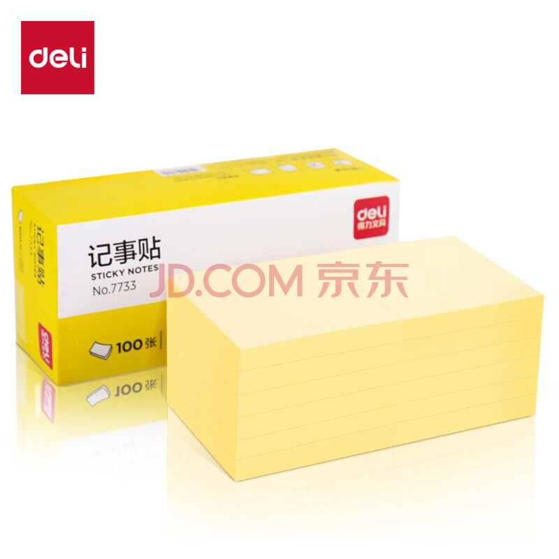 商品相册:得力(deli)12本黄色便利贴粘性便签纸 76*76mm备忘留言纸/记事贴 办公用品 7733第