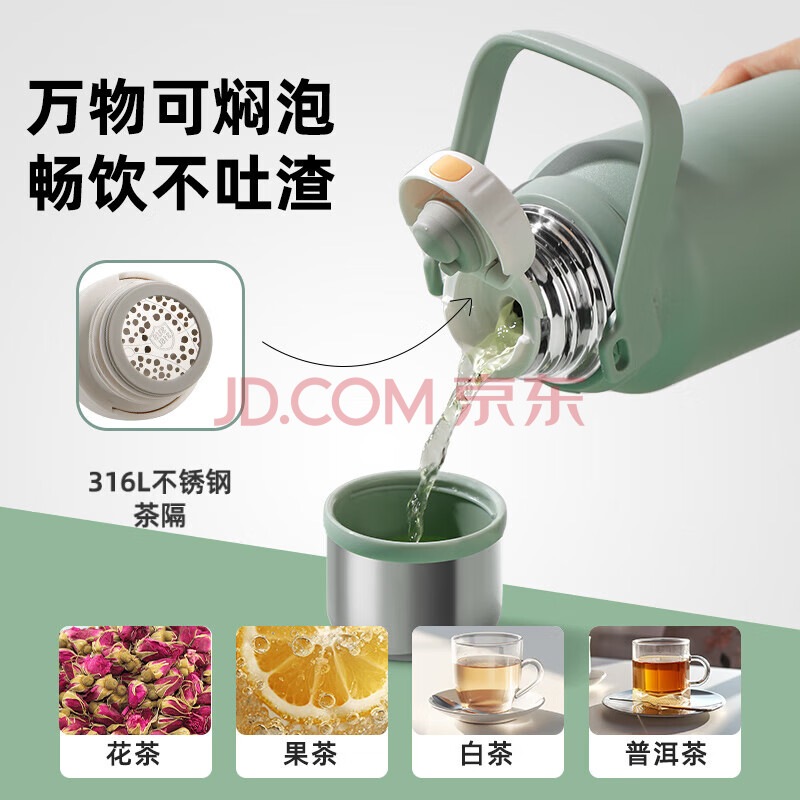 商品相册:富光保温杯保冷杯壶316L大容量男女学生便携茶水分离水杯子茶杯1200ml第