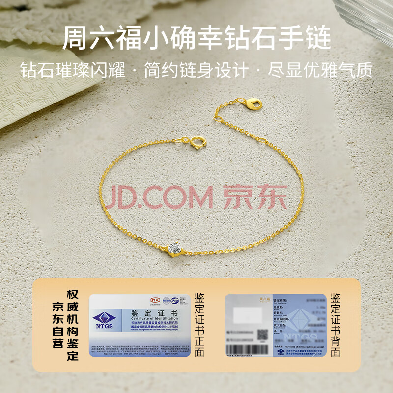 商品相册:周六福k金钻石手链双色简约单钻手链W0711068 16+3cm约2.8分生日礼物第