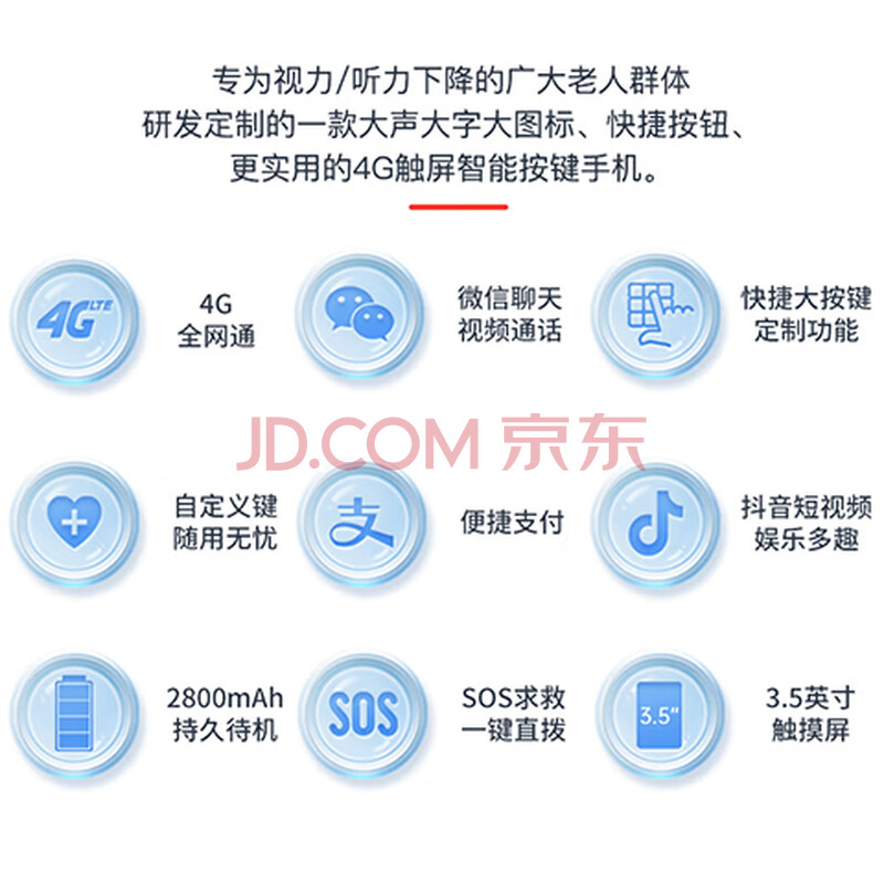 商品相册:LEBEST百事乐G70智能触屏按键手机长续航学生价老人老年机大字大声大屏5g卡备用机 黑色64GB第