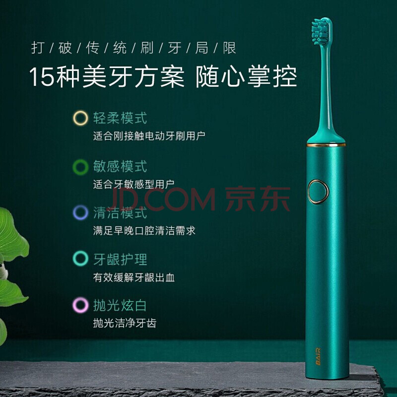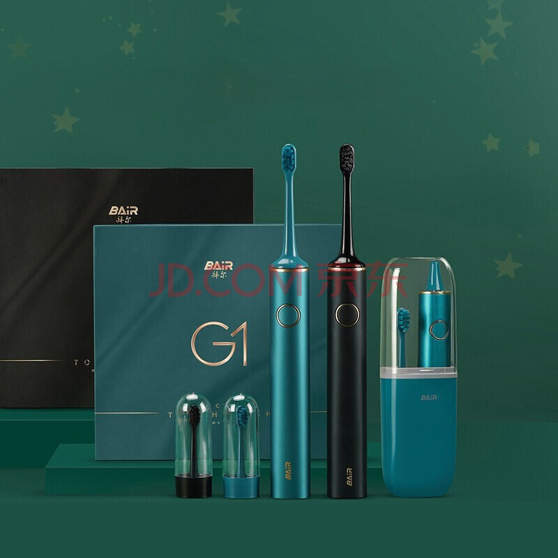 商品相册:拜尔(BAIR)G1 豪华版声波式锂电池充电式成人电动牙刷全自动USB智能快充天青色第