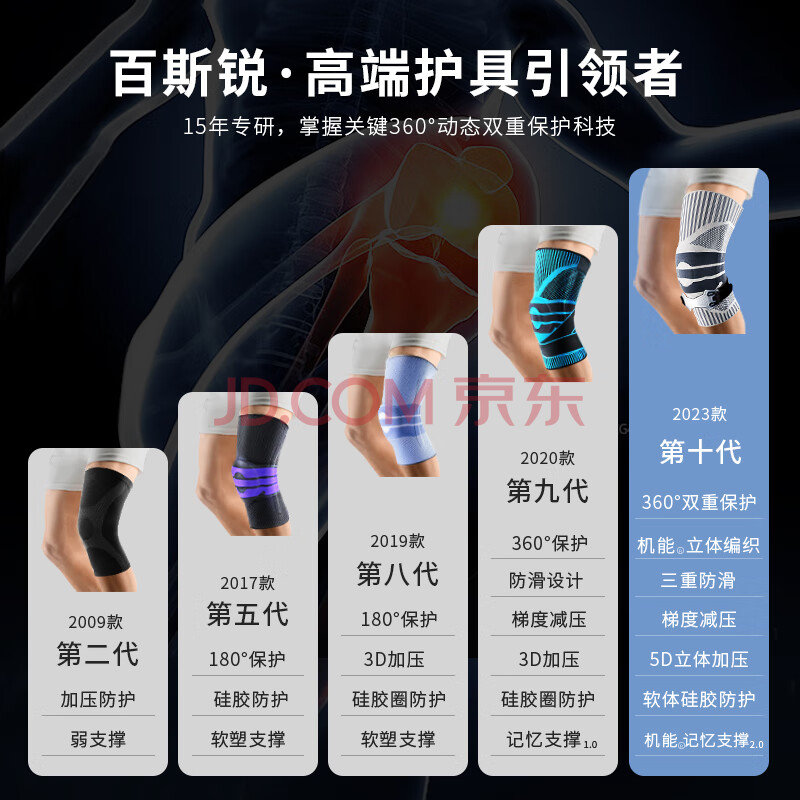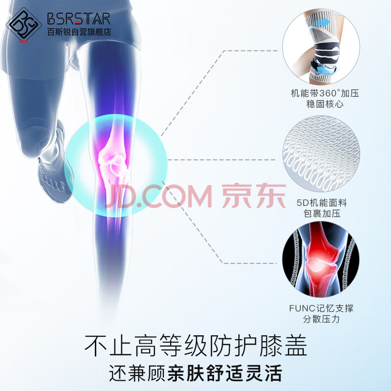 商品相册:百斯锐5D护膝运动半月板损伤积液篮球男士专用护漆盖男专业膝盖关节护具第