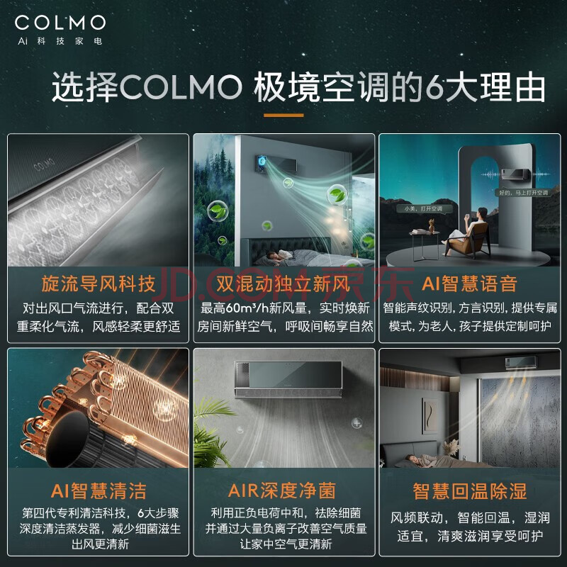 商品相册:COLMO 极境系列 家用空调挂机 1.5匹变频 新一级能效 智能家电 能壁挂式家用空调挂机 KFR-35GW/CA2第