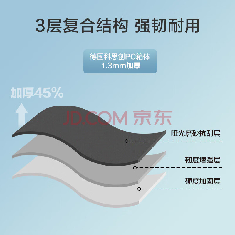 商品相册:京东京造 无界行李箱20英寸PC男女拉杆箱登机旅行箱万向轮 云海白明日达第