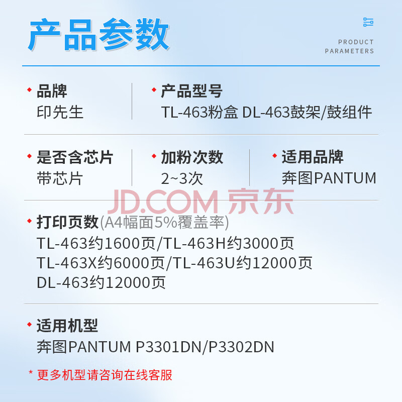 商品相册:印先生TL-463U特大容量粉盒适用奔图PANTUM P3301DN硒鼓打印机P3302DN墨盒DL-463硒鼓架TL-463碳粉墨粉鼓组件第