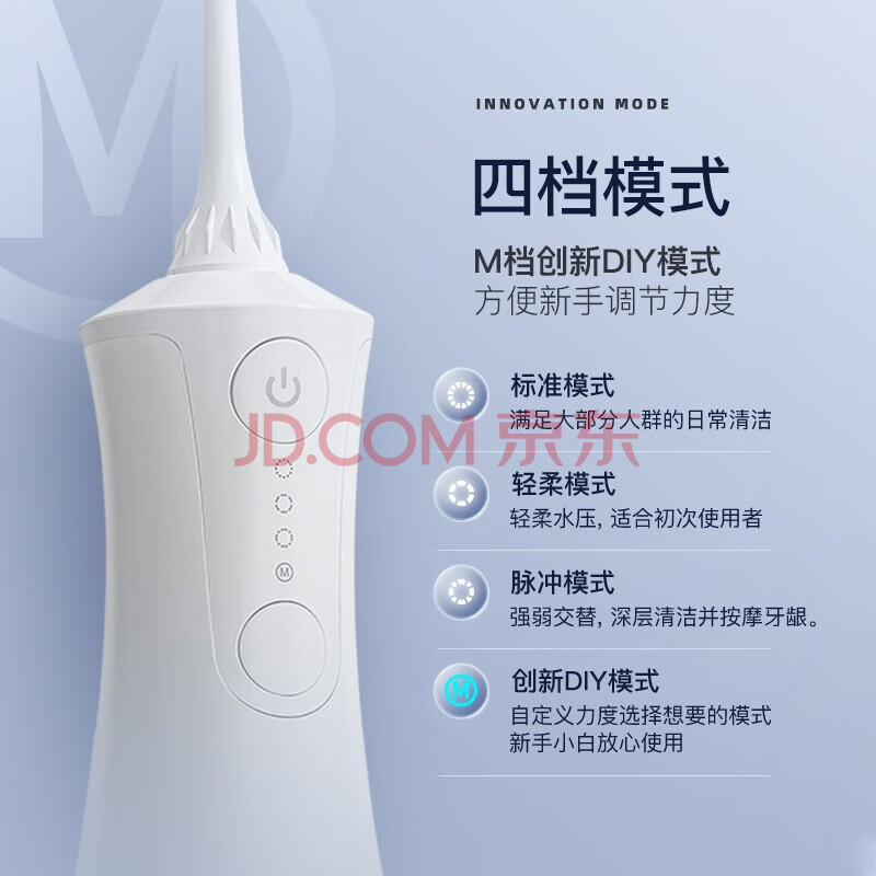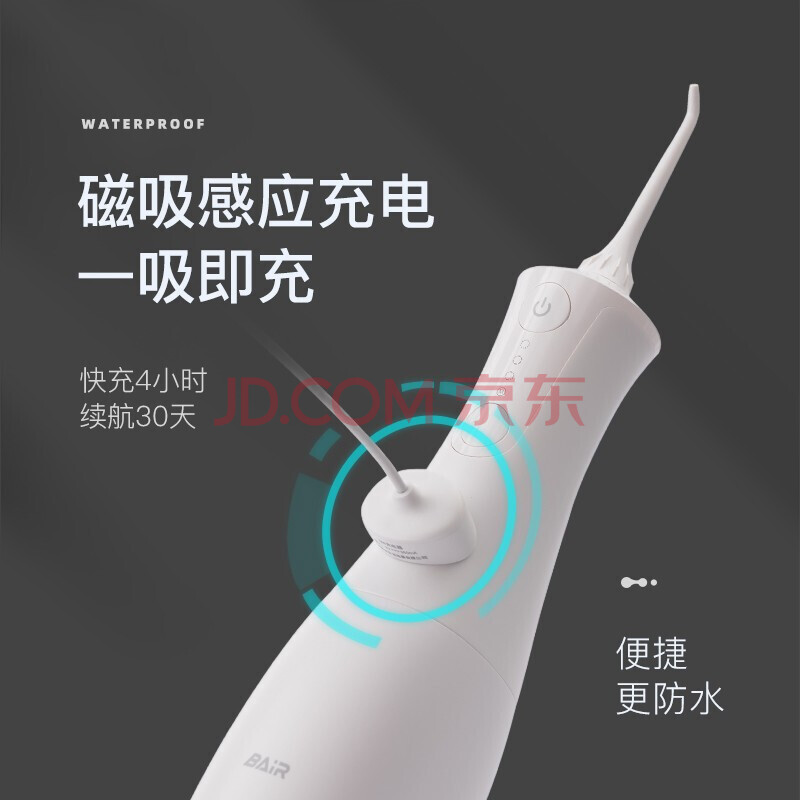 商品相册:拜尔(BAIR)电动冲牙器M301 家用便携式 口腔洗牙器水牙线冲洗洁牙器牙套清洗 300ml水箱 白色第