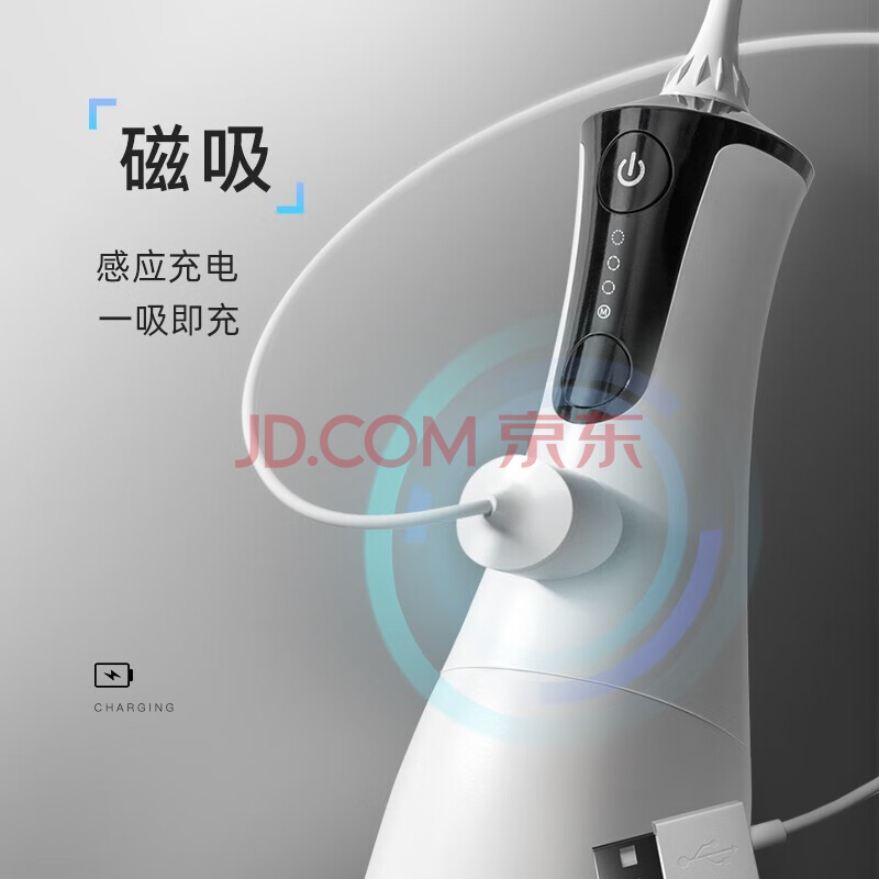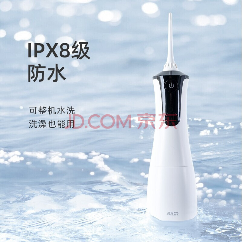 商品相册:拜尔(BAIR)电动冲牙器M4 便携式冲牙器情侣家用正畸洗牙器300ML大水箱+磁吸式充电 白色第