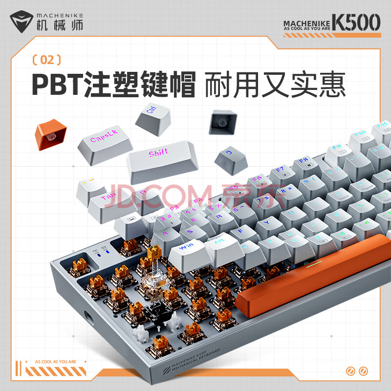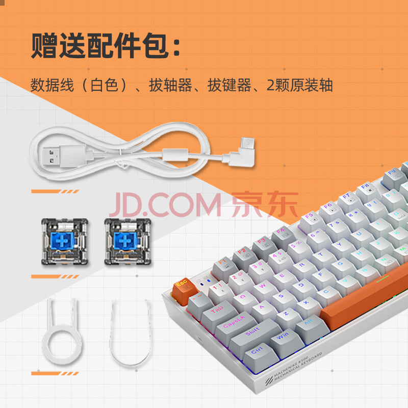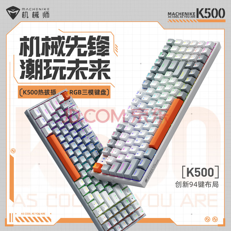 商品相册:机械师(MACHENIKE) K500 无线蓝牙三模机械键盘 游戏键盘 笔记本电脑台式机键盘 94键帽 红轴 RGB 白色第