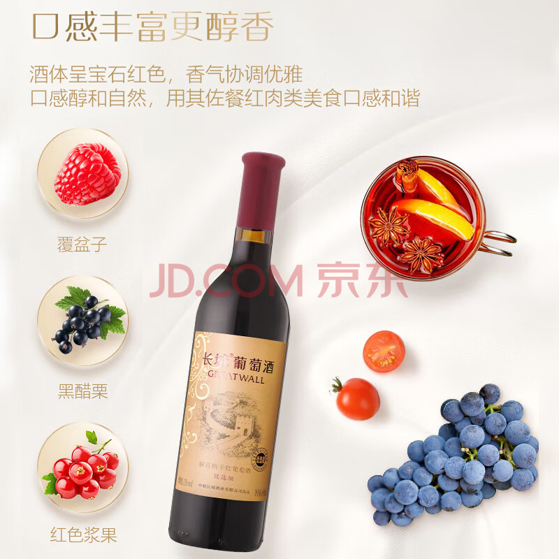 商品相册:长城优选级解百纳干红葡萄酒650ml*2瓶*3盒整箱装红酒送礼第
