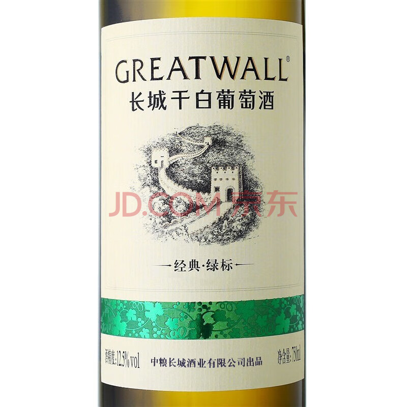 商品相册:长城 经典系列 绿标霞多丽干白葡萄酒 750ml 单瓶装 红酒中粮出品 第