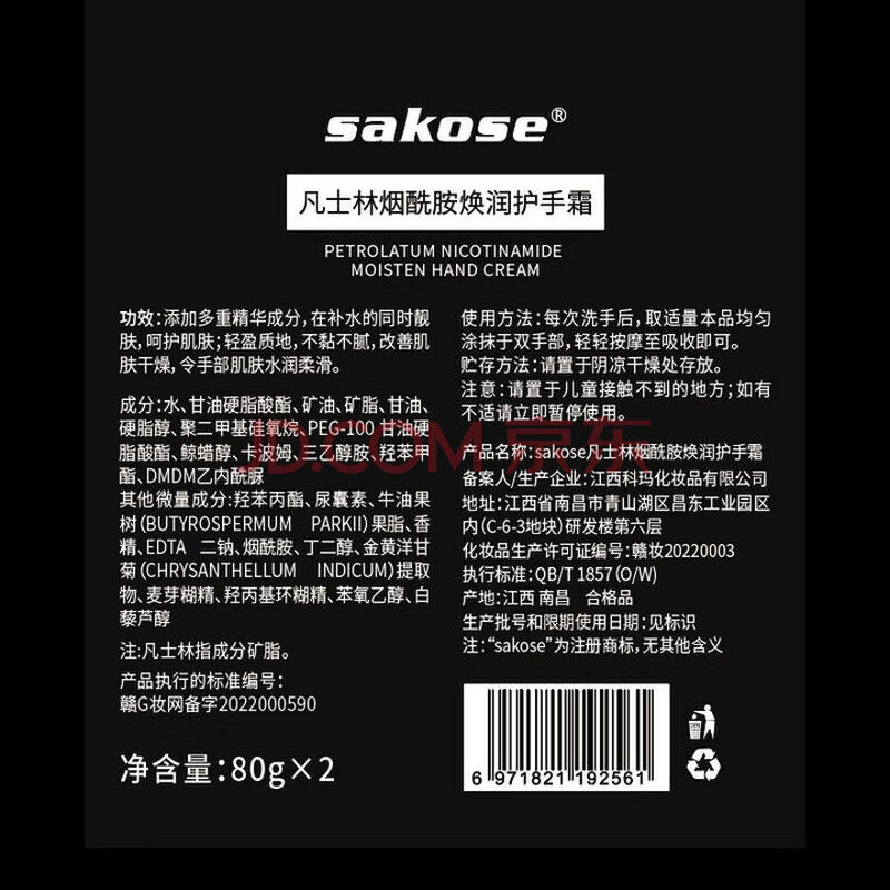商品相册:sakose凡士林烟酰胺男士专用护手霜2支四季保湿补水改善粗糙送男朋友第