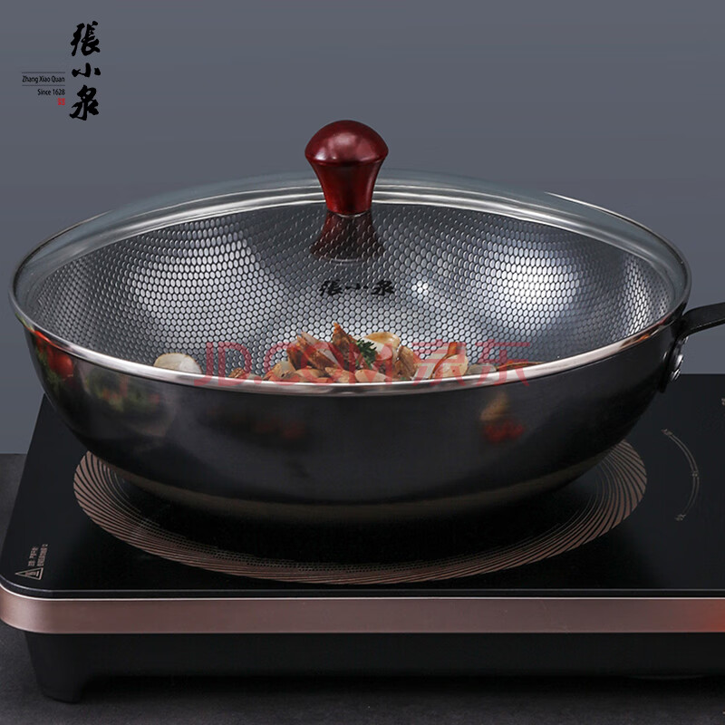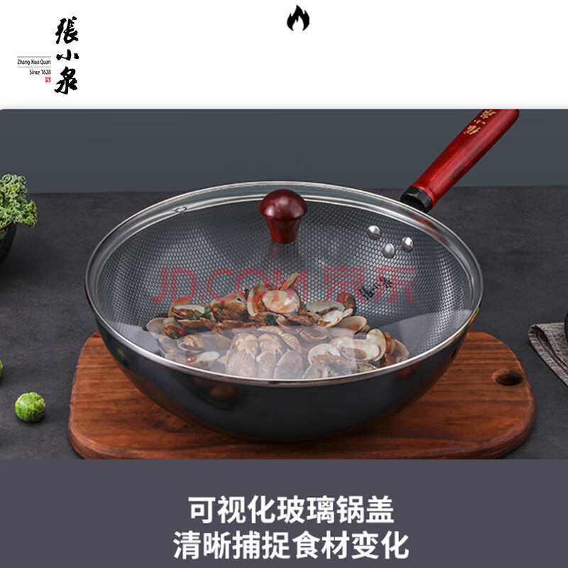 商品相册:张小泉 嘉岚珍珠铁锅 32cm家用炒菜锅具 通用灶具 实木手柄+可视锅盖第
