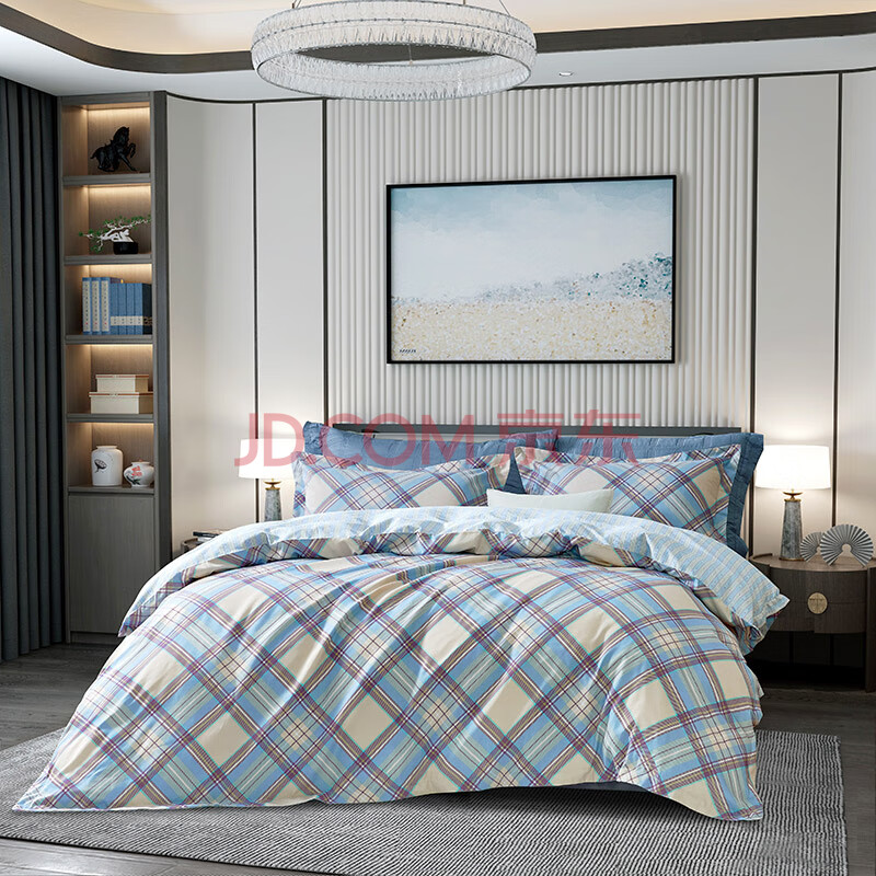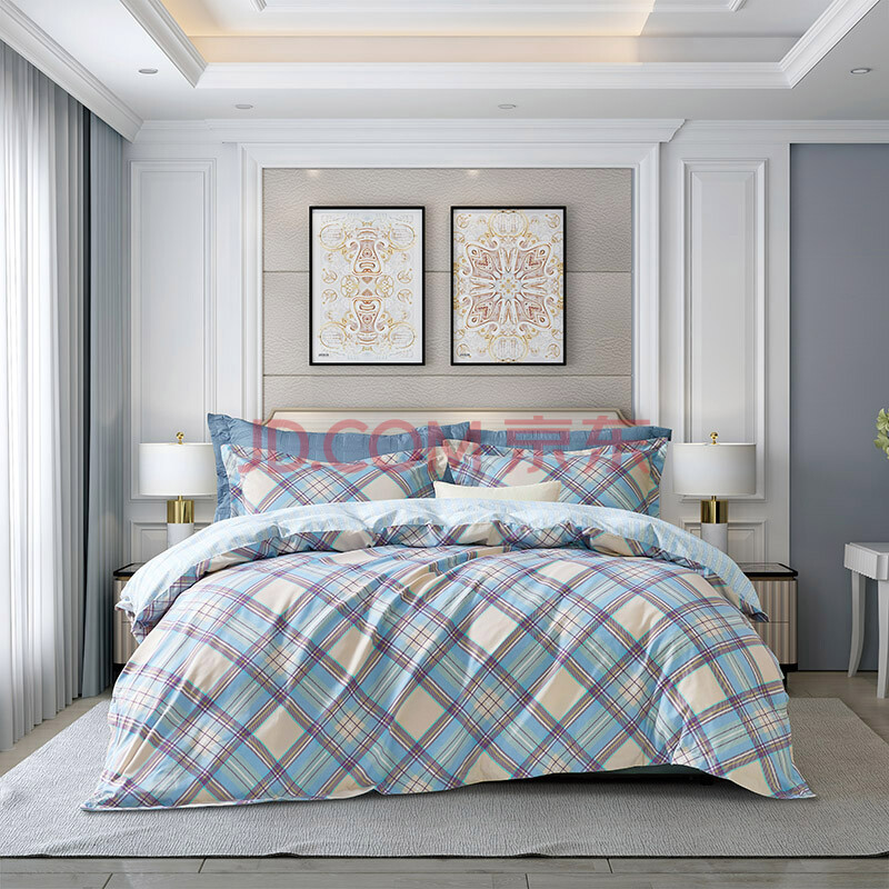 商品相册:富安娜(FUANNA)磨毛四件套 英伦风格纹印花床上四件套 阳光假日第