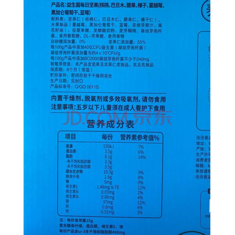 商品相册:洽洽 益生菌每日坚果小蓝袋15日装345g/盒第
