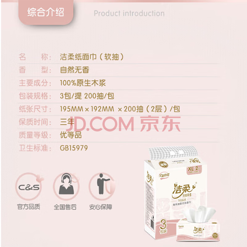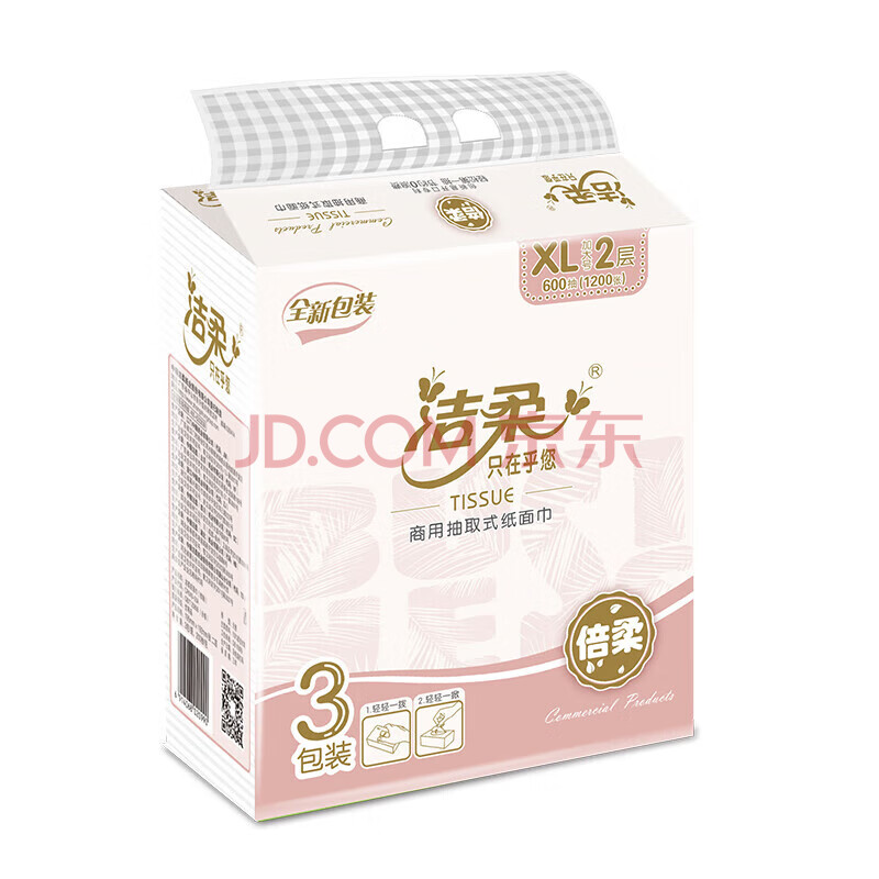 商品相册:洁柔 软抽2层200张商用宽幅抽取式加大号XL面巾纸30包CR043-03A第