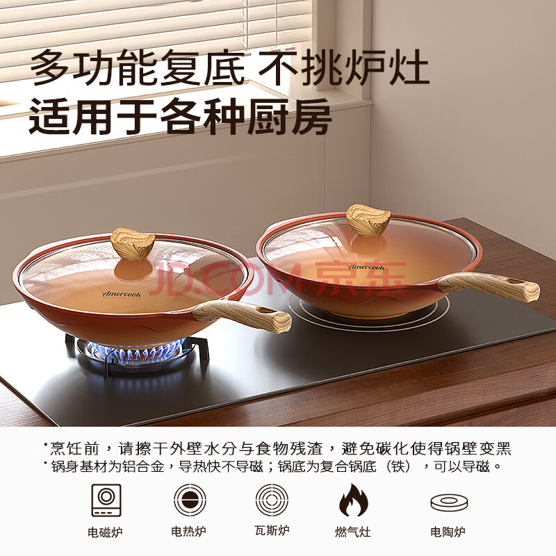 商品相册:Amercook陶土炒锅不粘锅阿尔菲塔平底炒菜锅家用阿米尔锅电磁炉燃气灶专用第