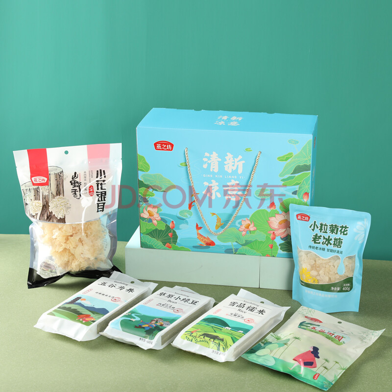 商品相册:燕之坊 清新凉意杂粮礼盒1895g 绿糙米+小绿豆+糯米+百合+银耳+老冰糖 6袋装 企业团购员工福利伴手礼第