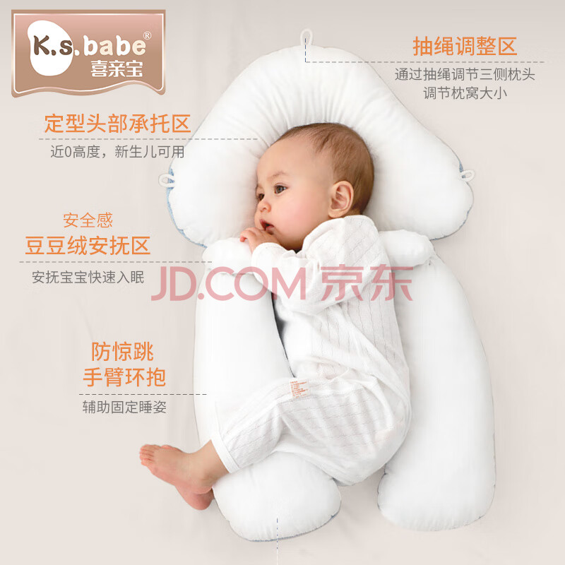 商品相册:喜亲宝 婴儿定型枕头新生儿安抚抱枕睡枕宝宝双面可用【睡头型+安抚】蓝第