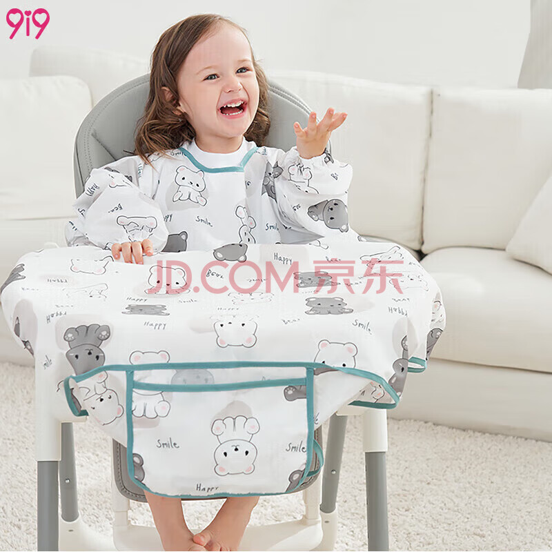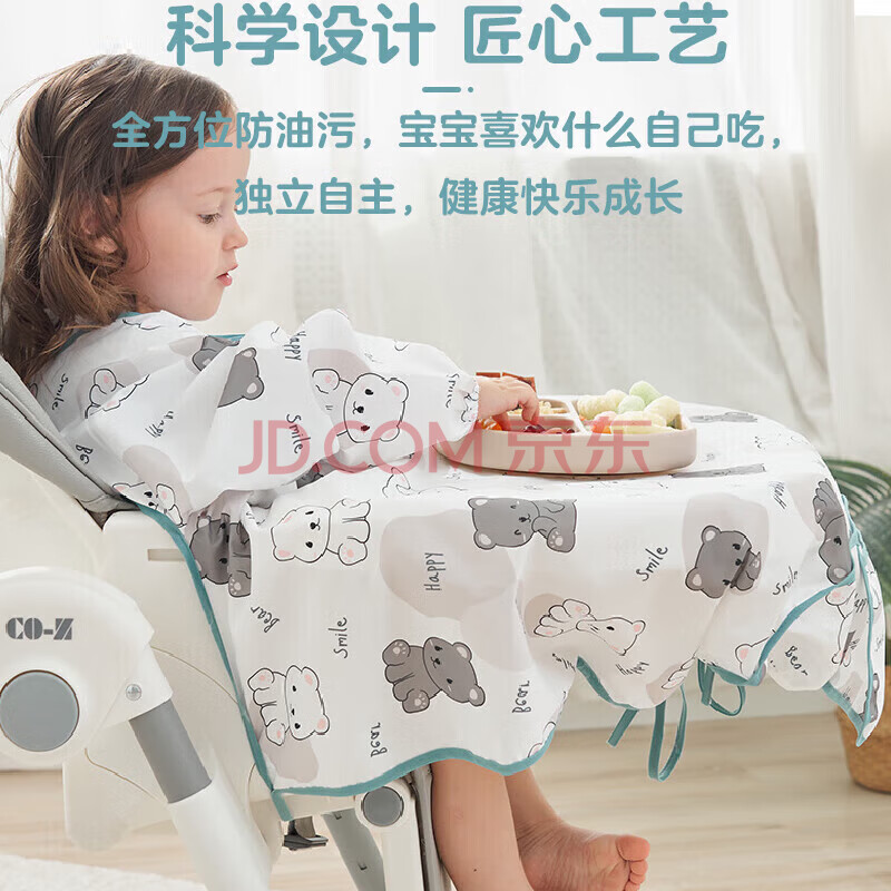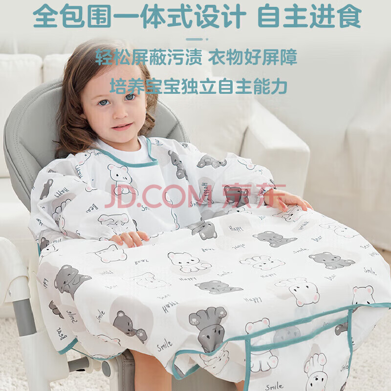商品相册:9i9婴儿罩衣宝宝一体式儿童餐椅吃饭神器防水防脏饭兜长袖加长款-熊第