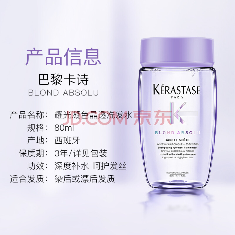 商品相册:卡诗(KERASTASE)耀光凝色洗发水 试用装&介意慎拍80ml 1号会员店第