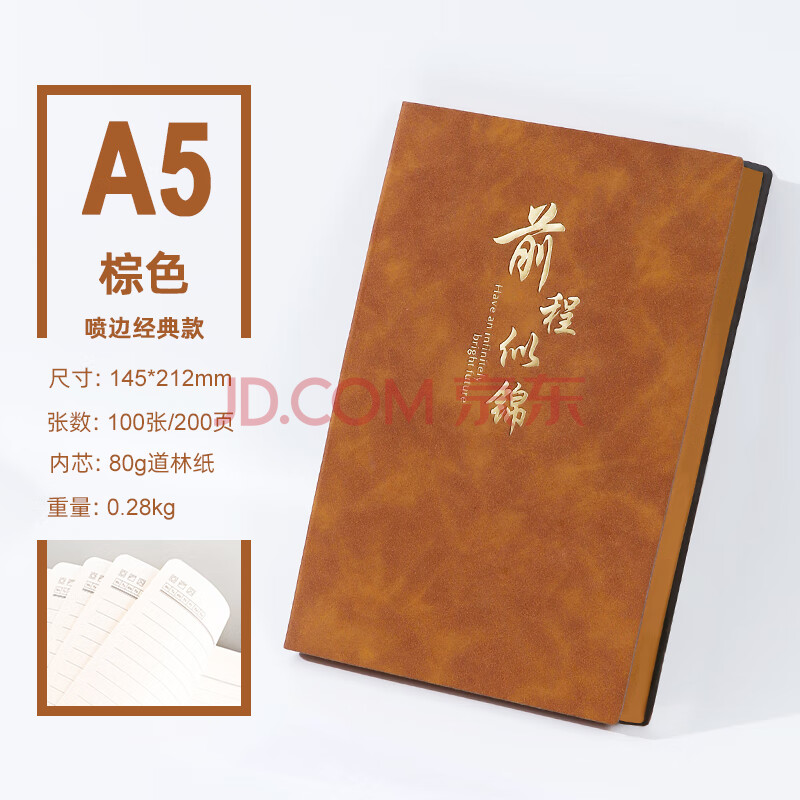 商品相册:XYBP笔记本子A5商务简约学生文具记事本ins风横线200页日记本(A5棕色前程似锦)第