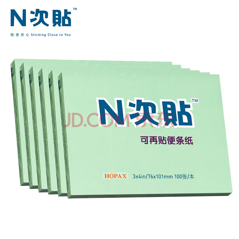 商品相册:N次贴(STICKN)6本装便利贴报事贴/便条纸/便签纸/便签本76*101mm自粘留言本600张 绿色31012-J6第