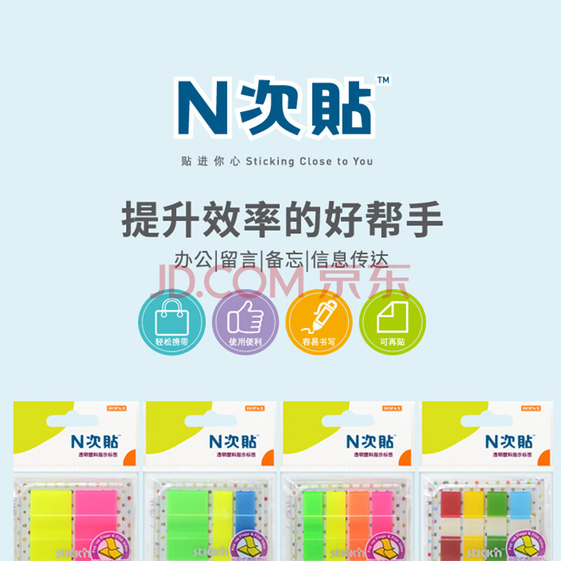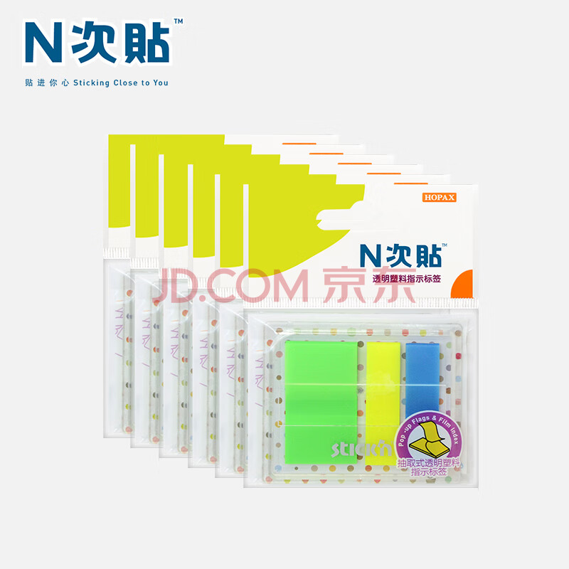 商品相册:N次贴(STICKN)360张3色荧光指示标签贴索引标签45*25+45*12mm抽取式便签条便利贴 6袋装34053-J6第