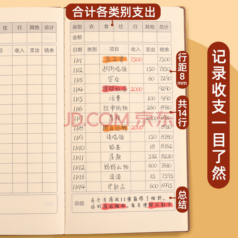 商品相册:XYBP 记账本A6家庭理财手帐本小号随身笔记本子日记本生活收入支出明细 (A6湖蓝色)第