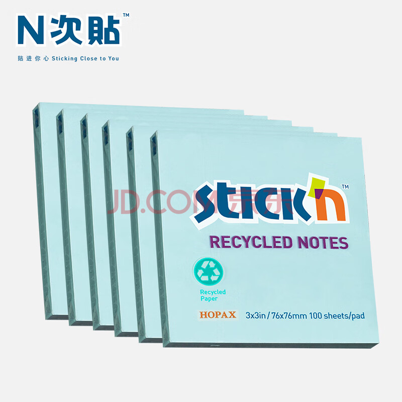 商品相册:N次贴(STICKN)6本装环保再生纸便利贴报事贴/便条纸/便签纸/便签本76*76mm600张 蓝色36507-J6第