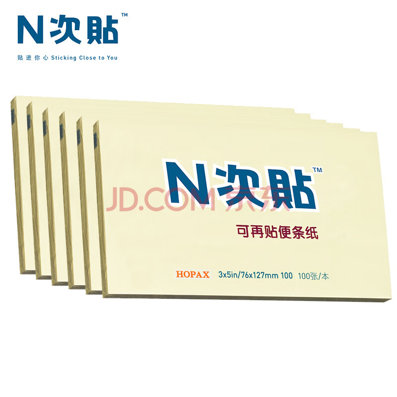 商品相册:N次贴(STICKN)6本装便利贴报事贴/便条纸/便签纸/便签本76*127mm自粘留言本600张 黄色31059-J6第